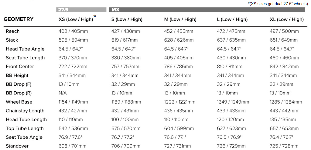 En el apartado de geometría se ha relajado un poco más el ángulo de dirección llegando a los 64.5º en su posición Low que combina con los 76.5 grados del sillín y unas vainas con una longitud de 439 mm.
