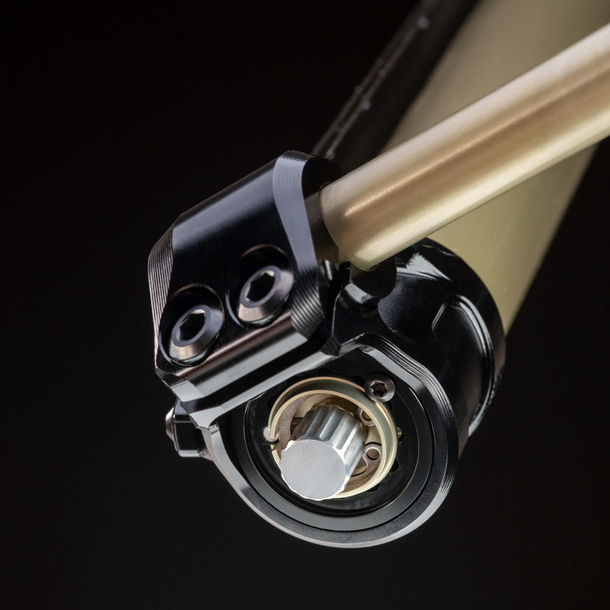 La clave del nuevo modelo de Intend está en el aumento del diámetro de las barras, que pasan a 38 mm, acompañadas por un sistema de doble mordaza para el eje, disponible tanto en 15 mm como en 20 mm, sin necesidad de conversiones gracias a un nuevo diseño del conjunto eje–punteras.