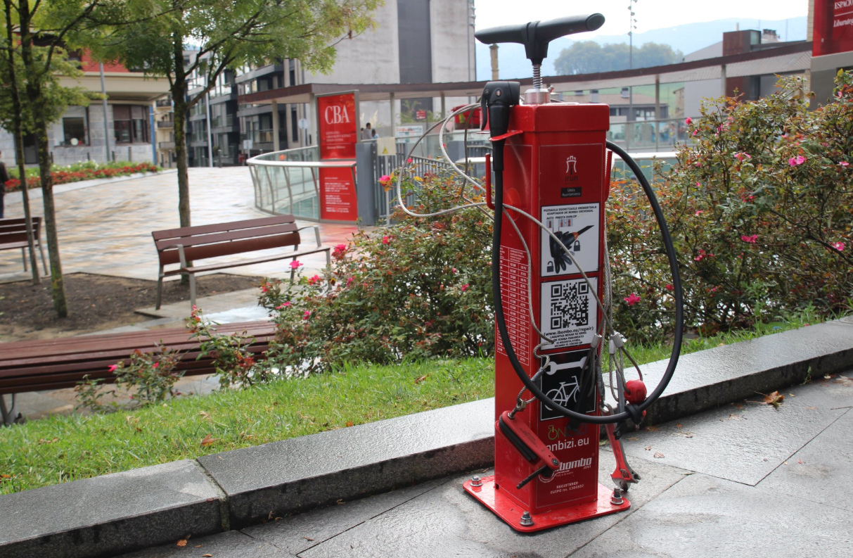 Los postes de reparación de bicicletas han sido instalados junto al deportivo Azken Portu, en la plaza San Juan y al inicio del bidegorri hacia ibarla. La idea es impulsar el uso de la bicicleta como transporte comunicaba el delegado de movilidad Borja Olazabal.