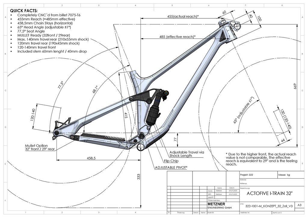 Pero este beneficio tiene un coste: requiere rediseñar numerosos componentes. Actofive lo ha resuelto con una potencia específica de negative rise, vainas más largas y un frontal más compacto, logrando que la ergonomía sea idéntica a la versión de 29”. La I-Train 32 solo tiene disponibilidad de cuadro suelto, con un precio sin amortiguador de 6990€, puedes comprarla ya en la web oficial de la marca.